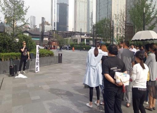 5月23日下午,记者接到爆料,在春熙路地铁口附近的广场上,一男子当街把电脑砸了,扬言要当“网红”!