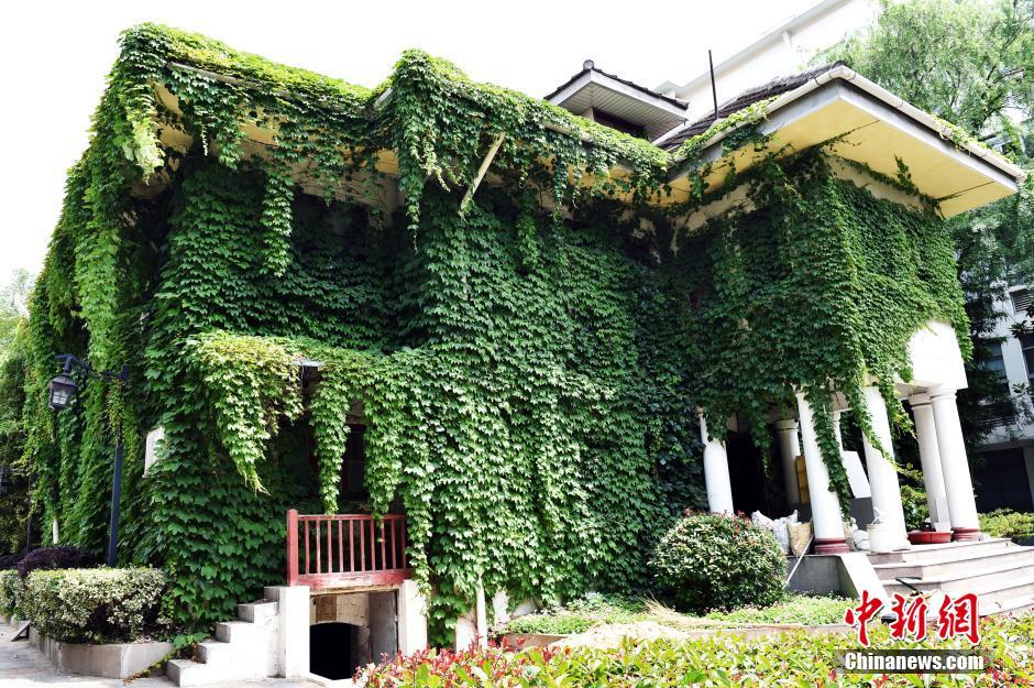 5月23日,在江苏南京大学校园里拍摄到的“绿色树屋”。当下正值五月初夏时节,迎来南京大学“藤包房”最佳观赏季节,长势良好的爬山虎将校园里的各色建筑装扮得郁郁葱葱、生机盎然。 中新社发 饶国君 摄 图片来源:CNSPHOTO