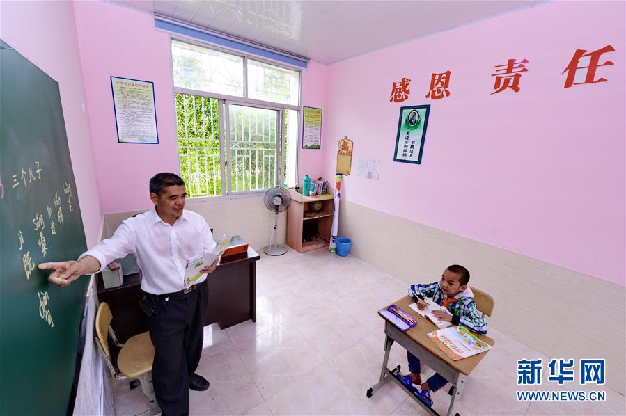 5月26日,吴志光老师和兰新荣在课堂上。新华社记者 张国俊 摄