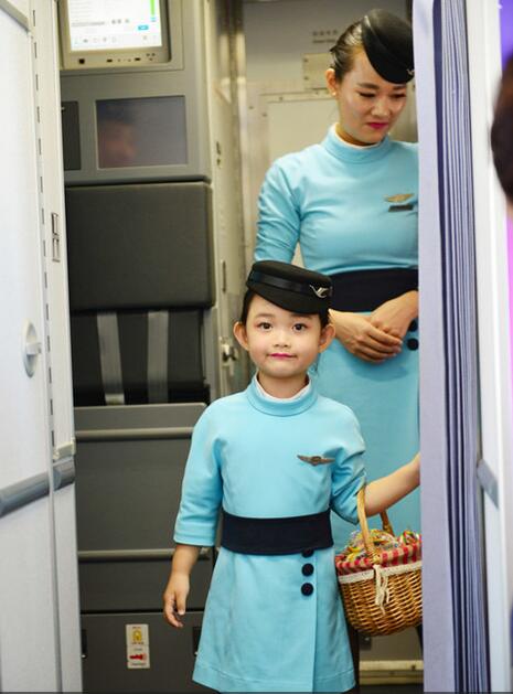 4岁超萌空姐机长机上发棒棒糖