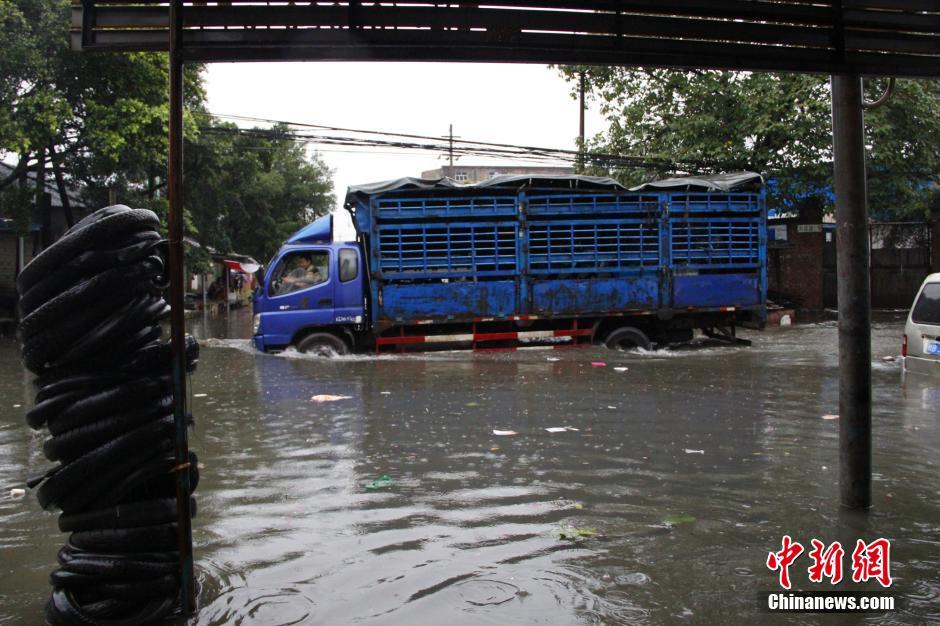 6月14日凌晨起,广西柳州市区及六县遭强降雨持续侵袭,导致城区内多处街道内涝。在该市柳江县拉堡镇利国路路段,积水深处已没过成年人膝盖,开车犹如“水中行船”,民众出行困难。截至当日8时,该市共有35个乡镇(地区)遭遇暴雨、大暴雨和特大暴雨袭击。目前,广西已启动洪涝灾害Ⅳ级响应。图为一辆汽车在内涝处行驶。 朱柳融 摄
