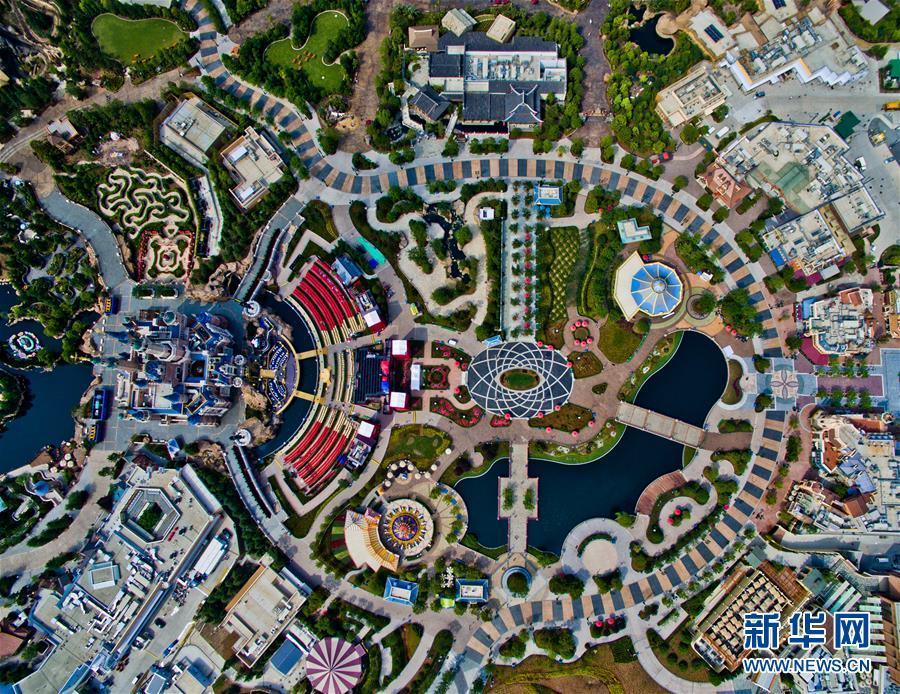 航拍上海迪士尼开幕庆典主会场