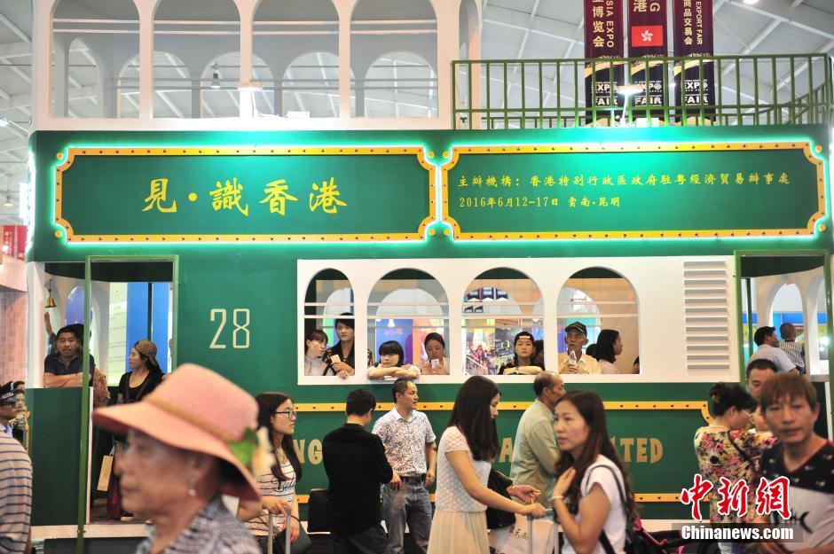 6月14日,“叮叮”车模型。当日,在云南昆明举行的第四届中国-南亚博览会上,香港展区丰富多样的展品和图片,以及帅气的警察乐队,吸引众多观众来此“逛”香港。中新社记者 刘冉阳 摄