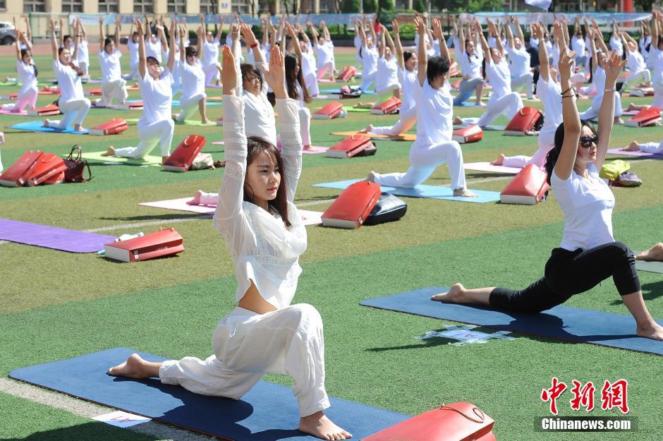 6月15日,山西太原千余名瑜伽爱好者集体练习瑜伽。6月21日是国际瑜伽日,为了更好地宣传瑜伽文化,号召全民参与有氧运动,山西省体育局联合山西卫视《冲关大峡谷》举办首届国际瑜伽交流会。本次活动主题为“倡导全民运动·瑜伽在行动”,希望通过瑜伽运动能提高全民体育意识,调动群众积极参加体育健身活动。韦亮 摄