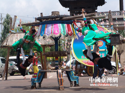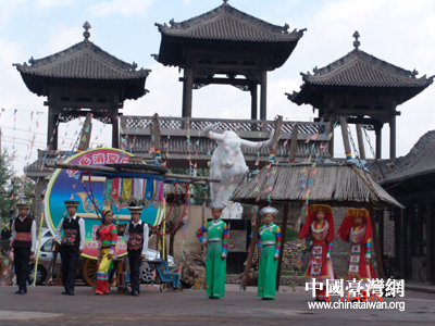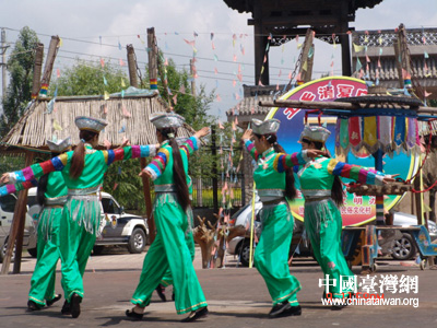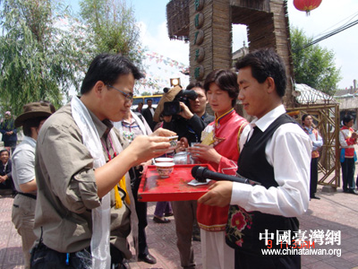 中国台湾网7月10日消息 昨天,海峡两岸记者青藏行参访团一行,参访了全国唯一的一个土族自治县——互助土族。体验了土族质朴独特的民俗,欣赏了土族的服饰表演、歌曲“花儿”、婚俗表演以及令人叫绝的轮子秋杂技表演。
