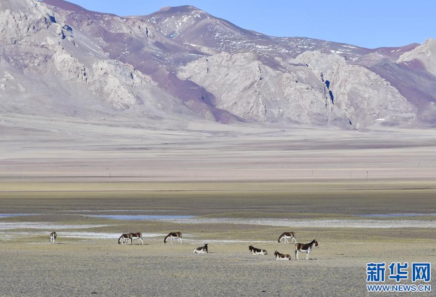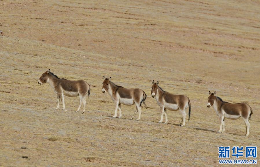 藏北高原上的藏野驴(1月16日摄)。新华社记者 张汝锋 摄