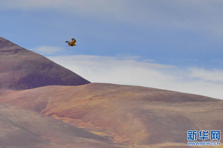 一只红隼在藏北高原上飞翔(1月16日摄)。新华社记者 张汝锋 摄