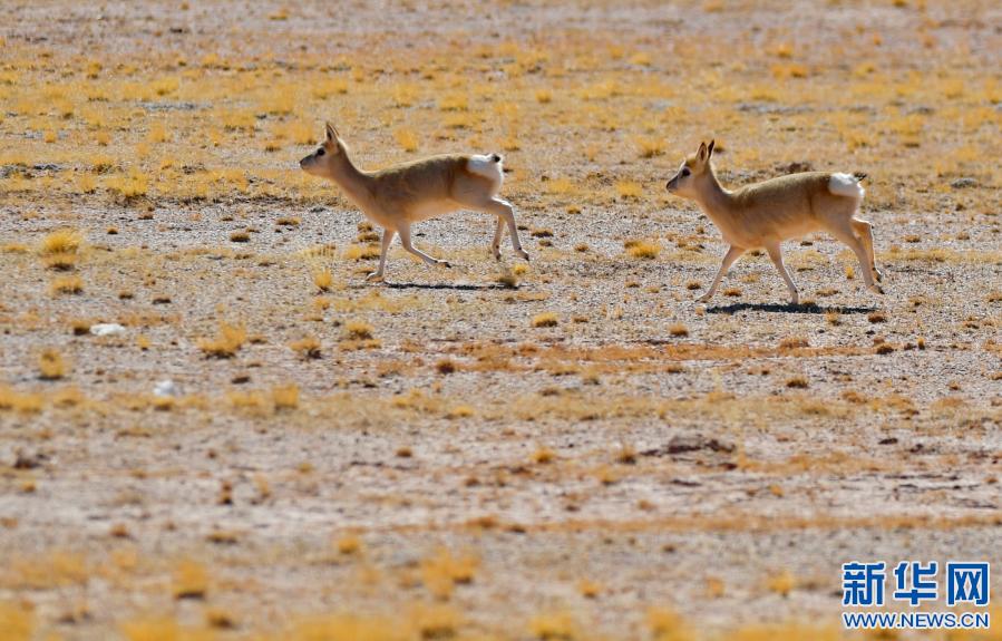 藏北高原上的藏羚羊(1月15日摄)。新华社记者 沈虹冰 摄