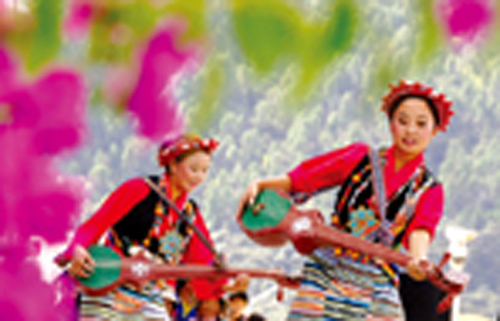 在中华民族悠久的历史文化长河中,神秘、朦胧、圣洁的藏族文化,正是一株永不凋零的雪莲花。而今,在党和政府的精心呵护下,这朵雪莲花更加美丽、更加灿烂。图为藏族姑娘为游客表演后藏民间舞蹈“堆谐”。新华社记者 格桑达瓦 摄