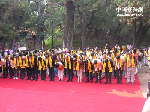 祭文读毕,全体参祭人员向黄帝陵寝行三鞠躬礼。(中国台湾网 芜同 摄)
