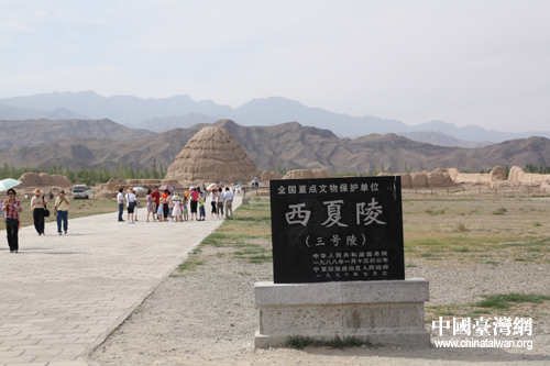 参观完镇北堡西部影城后,两岸记者还游览了贺兰山岩画和西夏王陵。