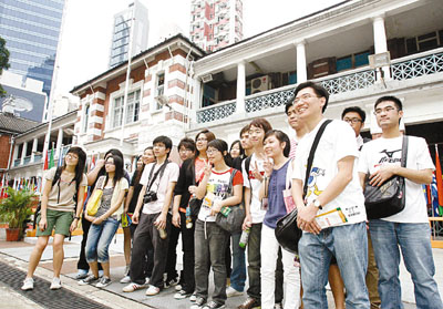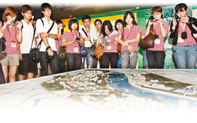 在700天时间里,世博展巡回了21个省区市和港澳台地区。图为台湾大学生参观上海世博园区规划模型。