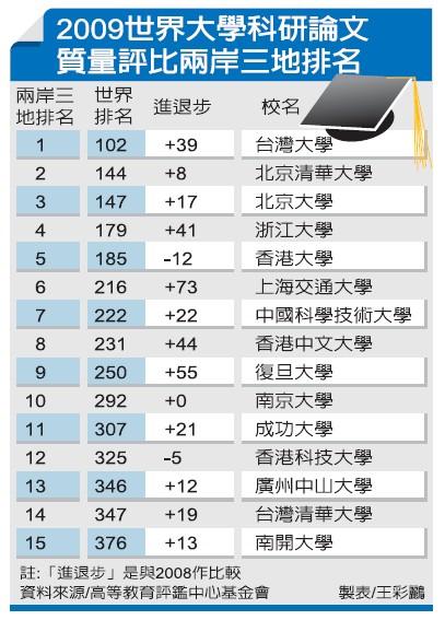 台出炉两岸三地2009论文评比 台大整体排名第一