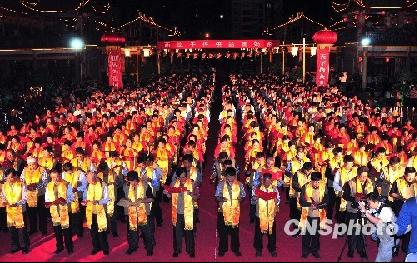 11月2日晚,莆田中华妈祖文化研究院举行“两岸千人颂妈祖”活动,两岸信众千多人同声朗诵《湄州妈祖金身巡安兴化颂文》,鼓罄和鸣,妈祖精神,两岸同心。当晚现场千盏红灯为主办方之一的台湾鹿港天后宫主委张伟东订制赠与,表达对“两岸千灯迎妈祖”礼敬之意。当晚,湄州妈祖金身巡游驻跸典礼在莆田中华妈祖文化研究院举行。 中新社发 张丽君 摄