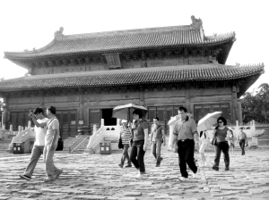 昨日下午,这些台湾的旅游巨头们饶有兴趣地参观了清西陵景区中葬有雍正皇帝的泰陵。在泰陵隆恩殿,大家一边听导游员的精彩讲解,一边不时跑到龙袍前合影留念。