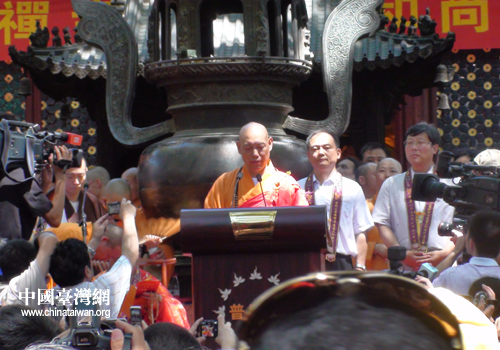 据了解,台湾佛教界来宾分别是来自中华护僧协会名誉理事长传孝法师、佛光山寺方丈心培法师、中道学苑开山方丈真华长老、世界华僧会会长净心长老、台湾净化社会文教基金会董事长净耀大和尚等高僧以及南海观音文教基金会会长吴天池等。