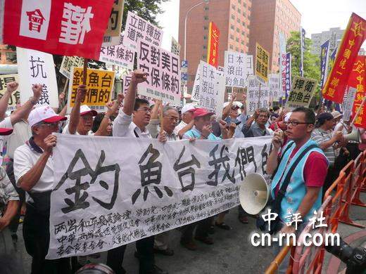 据中评社报道,两岸和平发展论坛与中华保钓协会等团体今天上午号召百余人赴日本在台交流协会抗议,他们喊口号要求日本政府“道歉、放人、赔偿”,并且当场焚烧日本国旗,丢鱼泄恨。