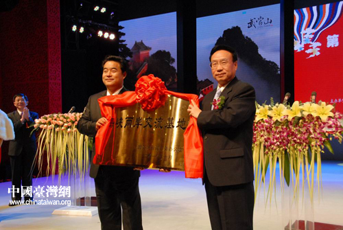 授牌仪式上,李亚飞向武当山特区工委书记、管委会主任李发平授于“武当山海峡两岸交流基地”的牌匾。这是继山东省枣庄市台儿庄之后全国第二个“两岸交流基地”。随后,在武当山进山大门口,中共中央台办、国务院台办主任助理、海协会执行副会长李亚飞和湖北省副省长田承忠为海峡两岸交流基地揭牌。