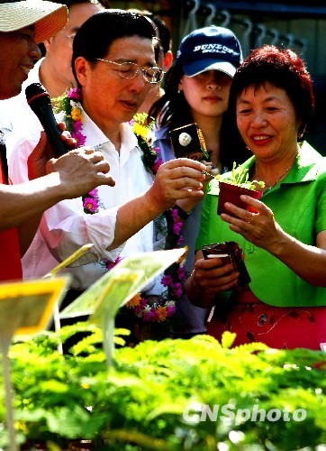 广西自治区党委书记郭声琨,7月4日在台湾彰化县一家经营花卉产业参访。 中新社发 宋吉河 摄