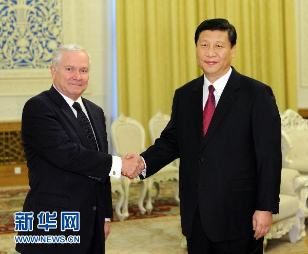 国家副主席、中央军委副主席习近平10日下午在人民大会堂会见了来访的美国国防部长罗伯特·盖茨一行。