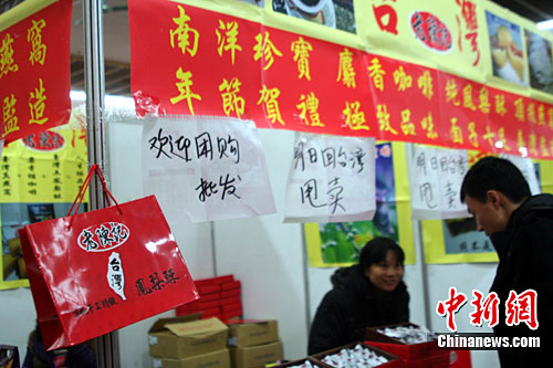 1月18日,在江西年货节的台湾食品展区内,钟情传统年货的市民对这些从宝岛带来的特色食品感觉新鲜,但掏钱购买的顾客却寥寥无几。中新社发 刘占昆 摄