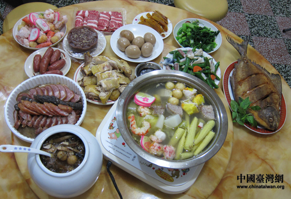 中国台湾网2月3日台北消息 除夕夜是农历年的活动起点,这天最重要的事情就是家人团圆围炉、开心地吃顿年夜饭。一般人家的年夜饭菜色,当然比不上五星饭店的丰富、精致,但平日在外地忙碌的家人,能团聚在一起,已经是最大的福份。而且,围炉菜的名称,通通寓意深远,隐含着无限祝福。或许,在台湾民众的心中,新的一年,守护全家人简单的幸福,就从这一道道吉祥又如意的年夜菜开始。(图/文 大陆台生会 林峻生)