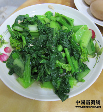 清烫芥菜。此菜久煮长青,又称长年菜,寓意延年益寿、长保青春。
