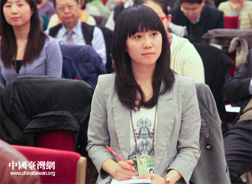 中国政协报记者在发布会现场向赵启正提问。(中国台湾网 陈佳慧 摄)