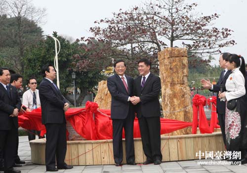 2月17日下午,辽宁参访团一行专程赴台北“花博会”,将3棵大小不等,最高2.05米,顶部直径0.50米,累计重量达3600公斤,生长于侏罗纪时期,有着1.5亿年历史的硅化木作为此行的伴手礼赠送给台北市民。陈政高与台北市长郝龙斌一同为硅化木揭幕。仪式上,陈政高表示由衷地希望辽宁人民与台湾人民的友谊像硅化木一样天长地久,牢不可破,赢得了围观民众一片叫好声。