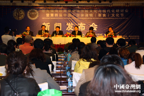第九届海峡两岸中华传统文化与现代化研讨会暨第四届中国·介休清明(寒食)文化节新闻发布会。(中国台湾网 董洁 摄)