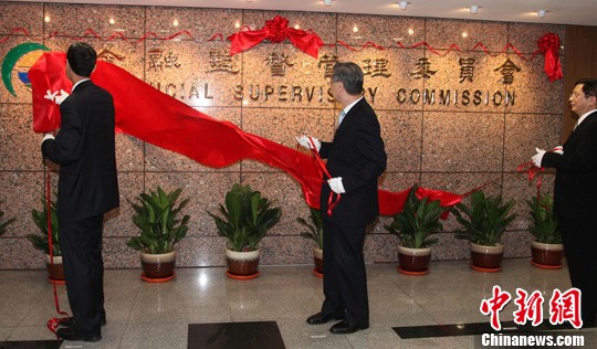 随后,台“行政院长”陈冲、“政务委员”管中闵、陈裕璋为“金融监督管理委员会”揭牌。