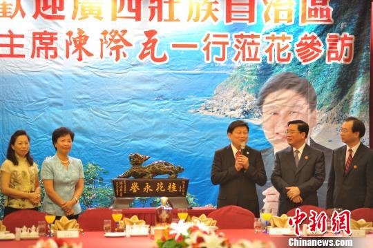 陈际瓦表示,近年来,广西台湾两地经贸、文化、医疗卫生等各方面的交流合作已颇具规模。台湾政商界高层参访广西越来越多,两地人员交往日趋频繁。每年到广西旅游、考察、参访的台胞超过50万人次,广西居民赴台人数达2.3万人次,与3年前比增加3倍。