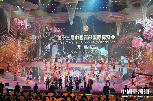 中国台湾网9月26日成都消息 25日晚,以“深化国际合作,加快西部发展”为主题的第十三届中国西部国际博览会在成都隆重开幕,中共中央政治局常委、全国人大常委会委员长吴邦国出席开幕式,并宣布第十三届中国西部国际博览会开幕。