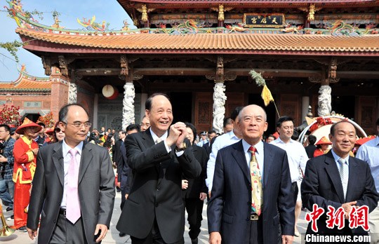 资料图:10月21日,台湾海基会新任董事长林中森一行来到由台商发起兴建的华东地区最大闽南建筑群——昆山慧聚寺妈祖庙参拜。中新社发 蒋振江 摄