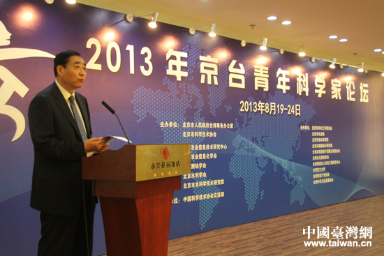 “2013京台青年科学家论坛”在北京举行,北京市科学技术协会常务副主席夏强在开幕式上致辞。(中国台湾网 孟雅诗 摄)