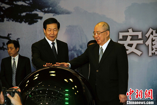 图为中国国民党荣誉主席吴伯雄(右一)和中共安徽省委书记张宝顺(右二)共同启动交流活动开幕式。中新社发 吴卫中 摄