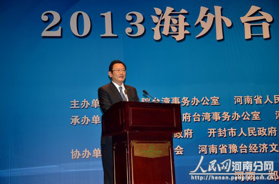 9月12日上午,“2013海外台商中原行”活动开幕式在郑州举行。世界台商总会总会长李芳信、wintelLTDA董事长叶庆和、侨商鞋业总经理赖建中、东隆进出口贸易公司董事长张志康等海外知名台商,河南省房地产业商会副会长兼秘书长赵进京,郑州台资企业协会会长、丹尼斯百货有限公司董事长王尚卿,郑州台资企业协会副会长、晶诚科技有限公司董事长陈泽亚等省内企业家和在豫台商近200人参加了开幕式。开幕式由省政府副秘书长刘世伟主持,副省长赵建才出席开幕式并致欢迎辞,国台办主任助理龙明彪在开幕式上致辞。