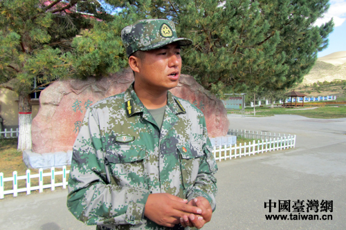 西北边境第一连连长肖亮接受记者采访。(中国台湾网 王伟 摄)