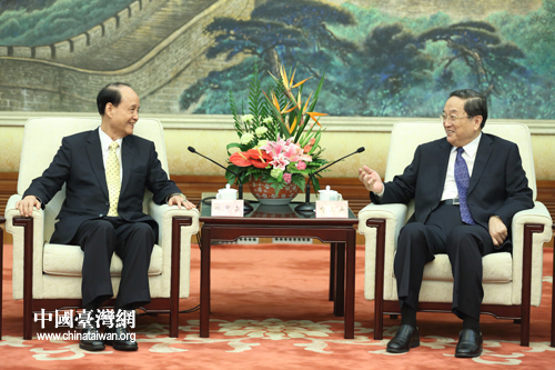 9月12日,全国政协主席俞正声在北京人民大会堂会见台湾海基会董事长林中森带领的海基会董监事参访团一行。(中国台湾网 陈佳慧 摄)