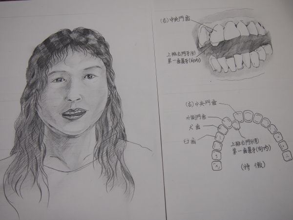 死者最明显的特征是门牙右边第1颗牙齿往内生长,乍看很像缺1颗门牙,有穿耳洞,身高约155公分。(图片来自台湾“中广新闻网”)