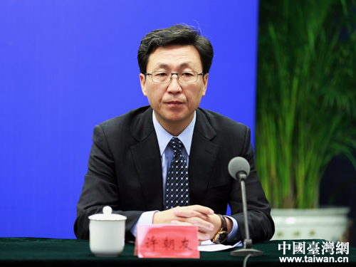 29日,两岸企业家峰会组委会在北京举行新闻发布会,组委会办公室副主任、两岸企业家峰会副秘书长、中国国际经济交流中心交流部部长许朝友参加。(中国台湾网王伟 摄)