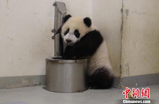 台北市立动物园透露,“圆仔”昨天“下班”后回到栏舍,伸展一下四肢,打个哈欠,跑到妈妈的竹杆旁嗅一嗅,随即睡眼惺忪地去找它最爱的“水盆君”(饮水盆)玩耍。(完)