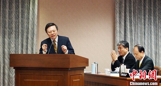 王郁琦上午在“陆委员”年终记者会上宣布访问日期。