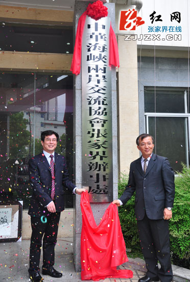自去年4月15日张家界——台北直航以后,张家界市促进海峡两岸交流合作再添一大盛事,4月11日上午,中华海峡两岸交流协会张家界办事处正式揭牌成立,市委副书记范运田、中国国民党副主席蒋孝严办公室主任詹清池共同为张家界办事处揭牌。