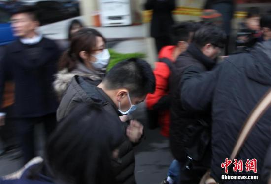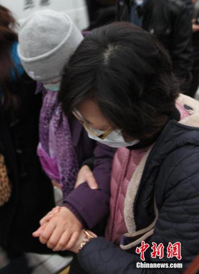 2月5日下午,台湾复兴空难罹难大陆旅客家属搭机抵达台湾桃园机场后,搭车赶往台北市第二殡仪馆确认遇难者身份。图为大陆旅客的亲属在陪护下步入殡仪馆。中新社发 路梅 摄