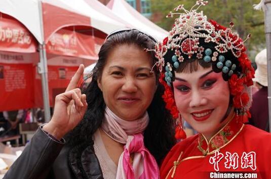 2月20日,在台中市举办的第五届海峡两岸春节民俗庙会上,台湾戏迷追到幕后与豫剧名角魏俊英合影留念。李贵刚摄