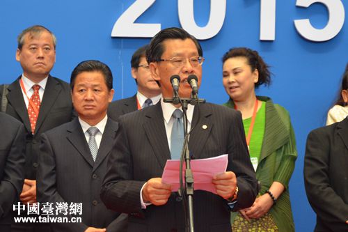 台湾贸易中心董事长梁国新出席2015天津台湾名品博览会开幕式并致辞。(中国台湾网 张洁 摄)