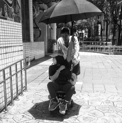 台北街头的一对夫妻
