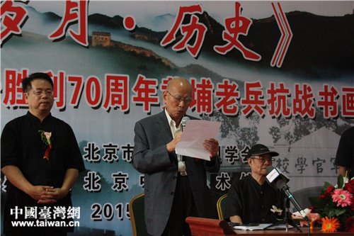 纪念抗战胜利70周年海峡两岸黄埔老兵抗战书画展在京开幕。(中国台湾网 段雯婷 摄)