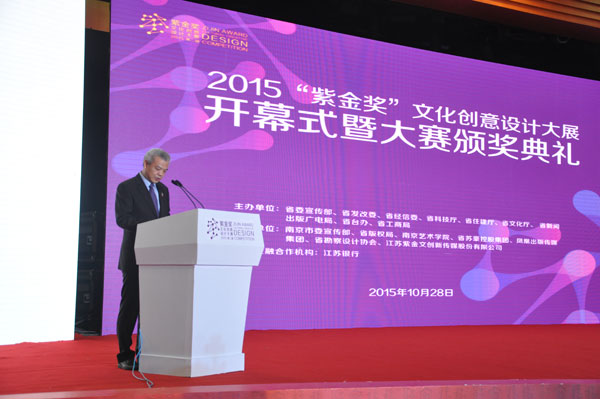 中国台湾网10月29日南京讯 10月28日上午,“紫金奖”文化创意设计大展开幕式暨大赛颁奖典礼在南京新庄国展中心举行。省委常委、宣传部部长王燕文出席并启动开幕按钮,大赛主承办单位领导,台湾文创产业联盟荣誉理事长李永萍等境内外大赛评委会专家以及首届大赛组委会大奖获得者为大赛金奖获得者颁奖。